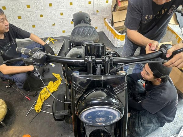Tương thích: Lắp chuẩn với Harley-Davidson Fat Boy, có thể tinh chỉnh dây thắng, dây ga phù hợp.