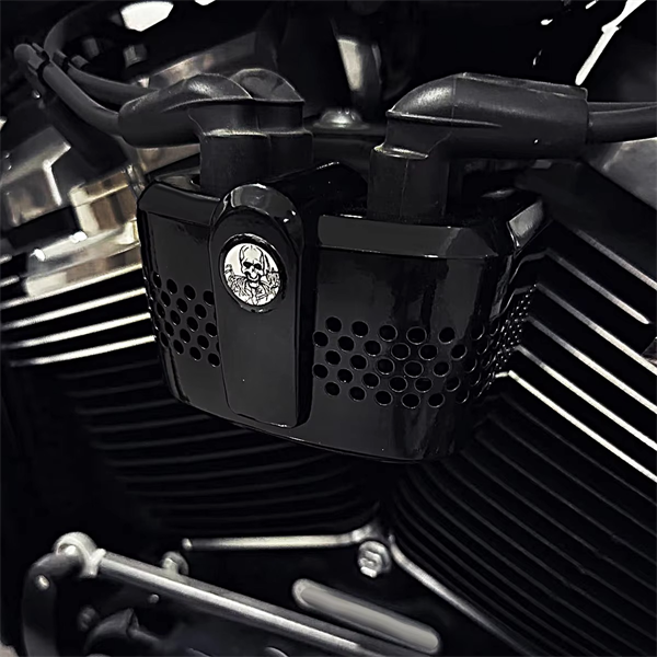 Ốp coil (Coil Cover) màu đen, được thiết kế cho các dòng xe Harley-Davidson Softail với động cơ Milwaukee-Eight (M8), giúp che chắn và tăng tính thẩm mỹ cho bộ phận đánh lửa.”